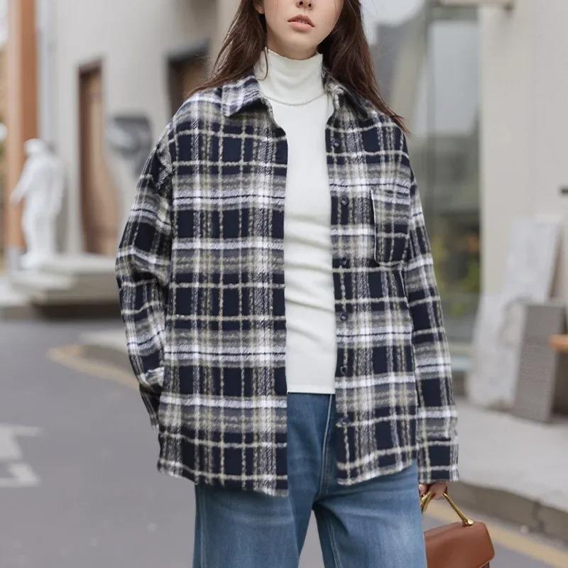 Women's Winter Wool Lined Flannel Plaid Jacket With Button Hooded Long Sleeved Jacket Men Sweaters Coat motorcycle style jacket