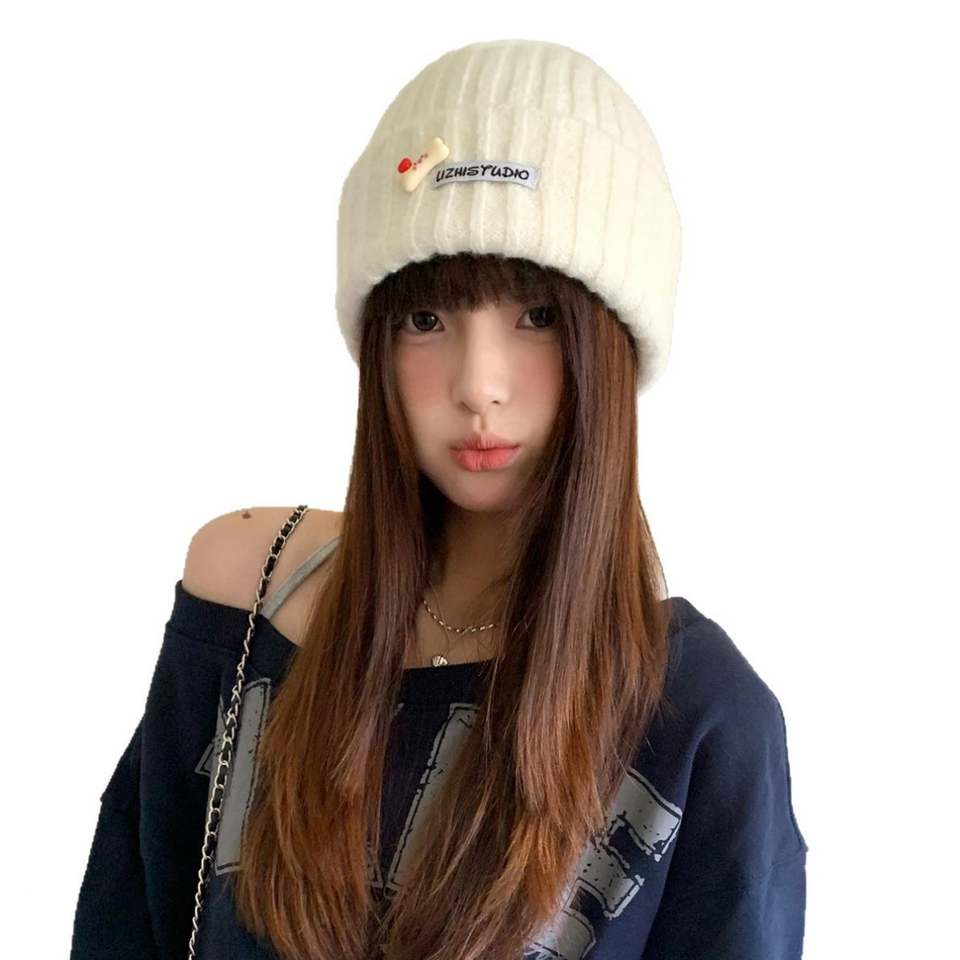Women's Wool Knitted Head-Wrapping Korean-Style Cute Warm Face Slimming Woolen Cap Earflaps Slipover Hat