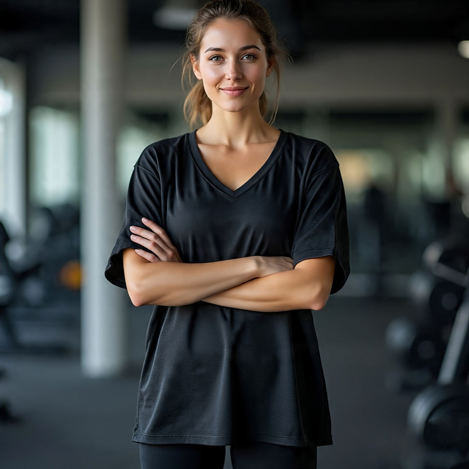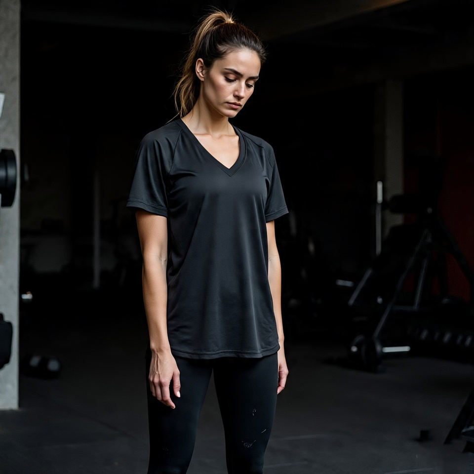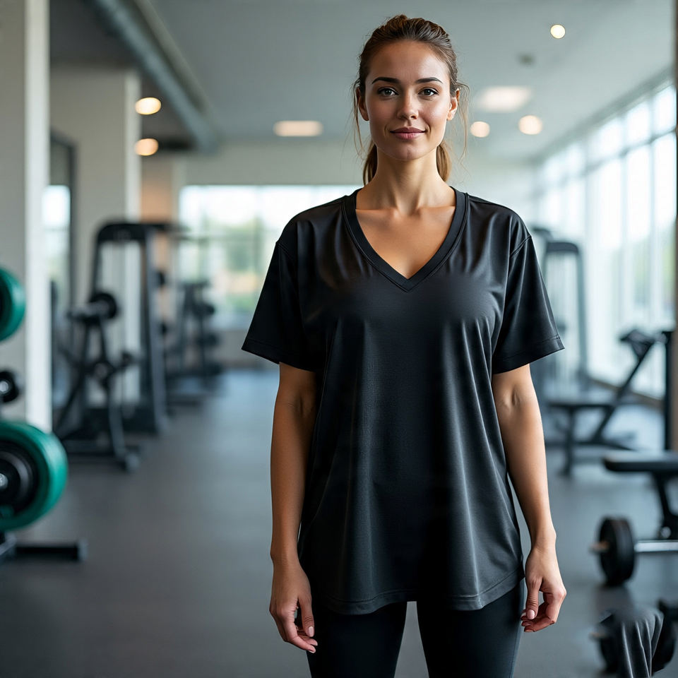 Women's Workout Fitness Drop Shoulder T-Shirt Oversize Short Sleeve V-Neck Baggy Gym T Shirt Women