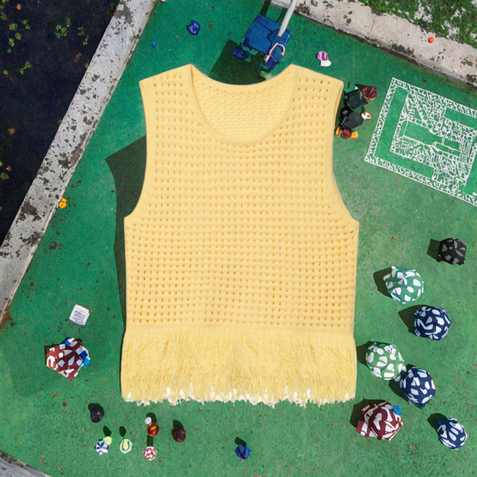 Women's Yellow Crew Neck Knitted Casual Sweater Vest with Eyelet Breathable Tassel Tank Top 100% Polyester