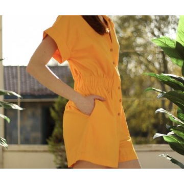 Women's Yellow Jumpsuit with Shirt Collar Playful & Fashionable