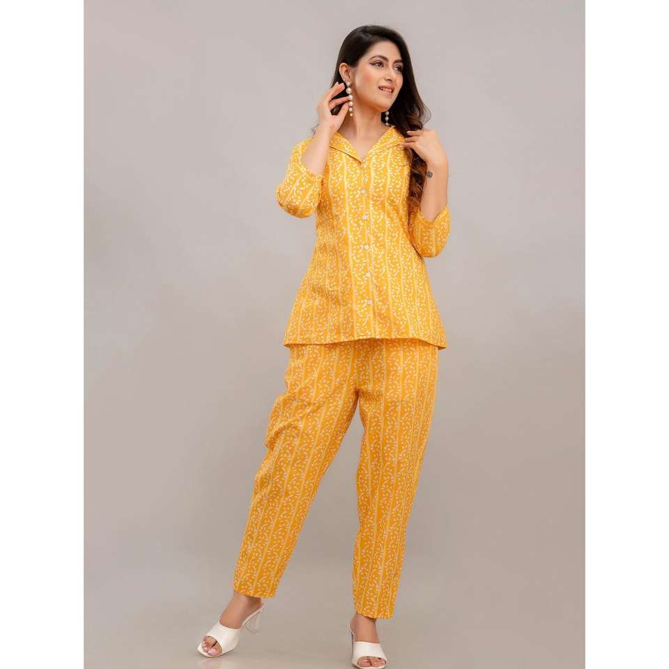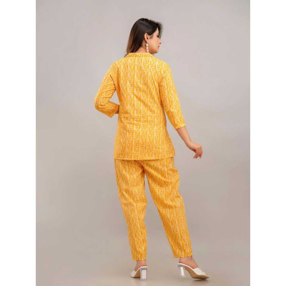 Women's Yellow Printed 2-Piece Shorts Set Above Knee Length Co-ord Outfits