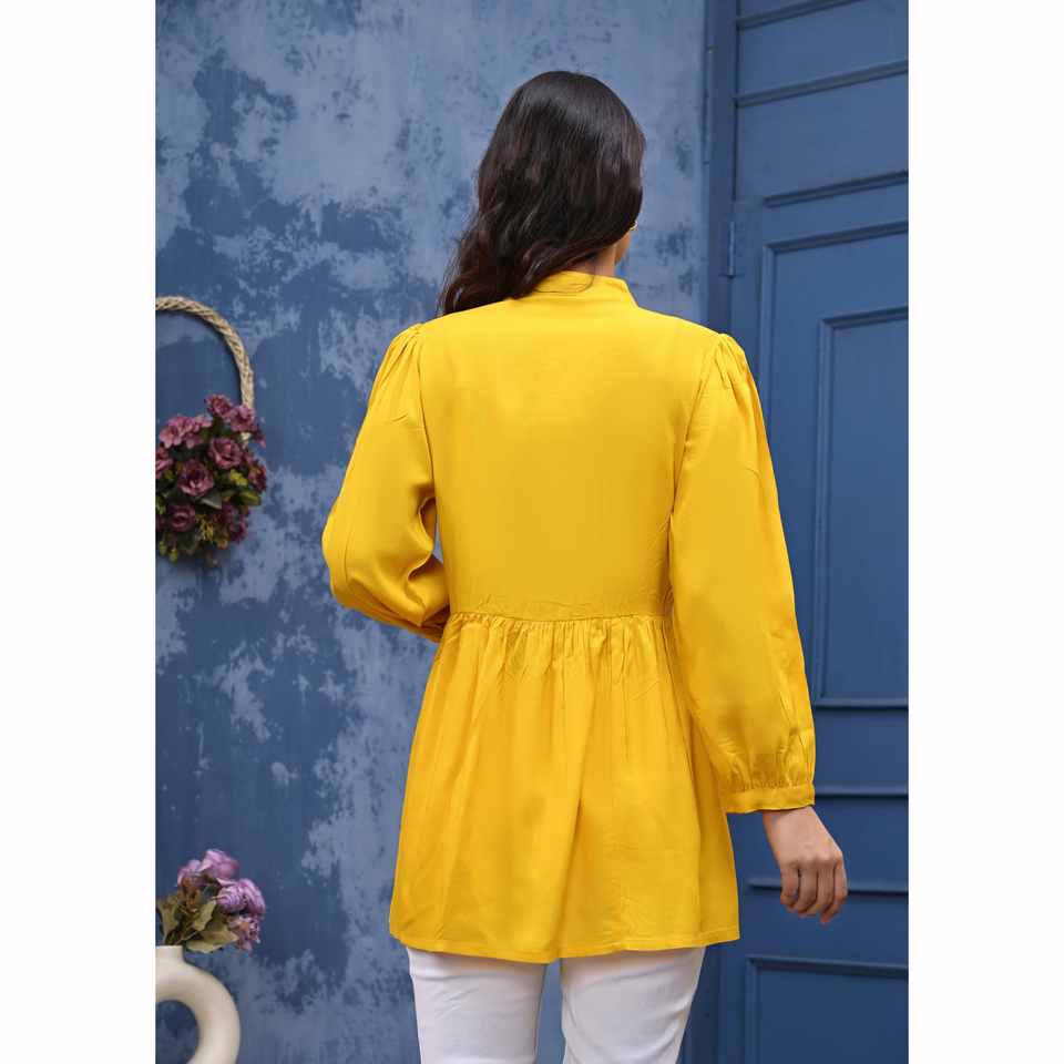 Elegant Women's Yellow Solid Rayon Casual One-Set Short Tops Kurti Style