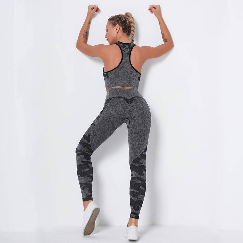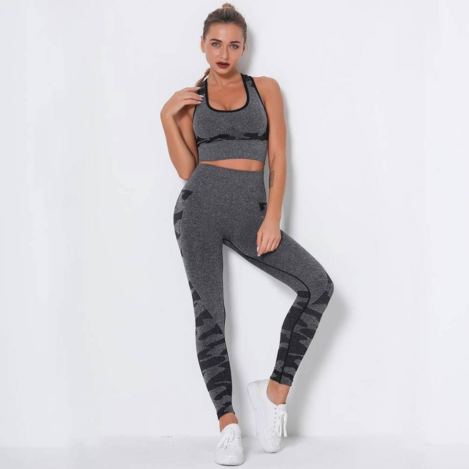 Women's Yoga Leggings and Bra 2-Piece Set Breathable Plaid Pattern Eco-Friendly Seamless High Quality