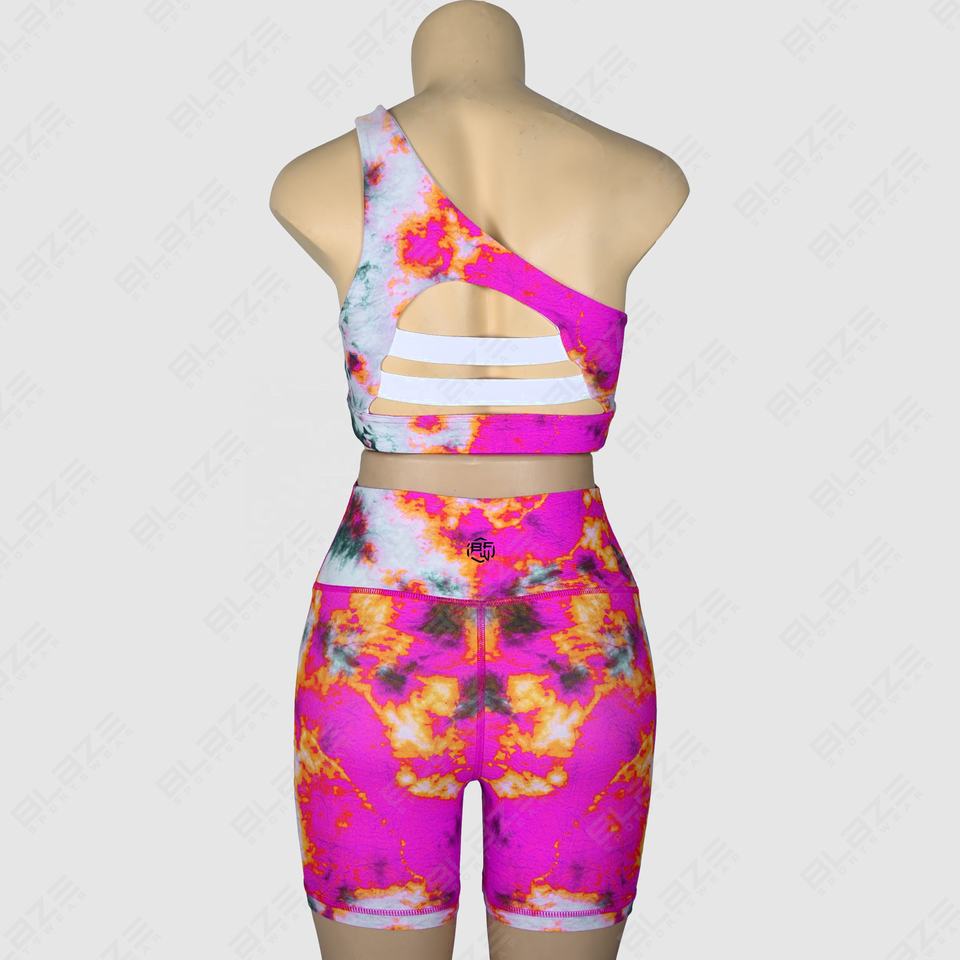 Hot Selling Yoga Sets One Shoulder Gym Bra Side Slit Design High Elastic Sports Skirts with Shorts Elastic Waist Yoga Leggings