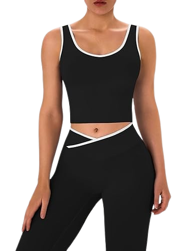 Women's Yoga Workout 2-Piece Set-Seamless Breathable Crop Top & Mid Waist Leggings with Elastic Waistband and Front Logo