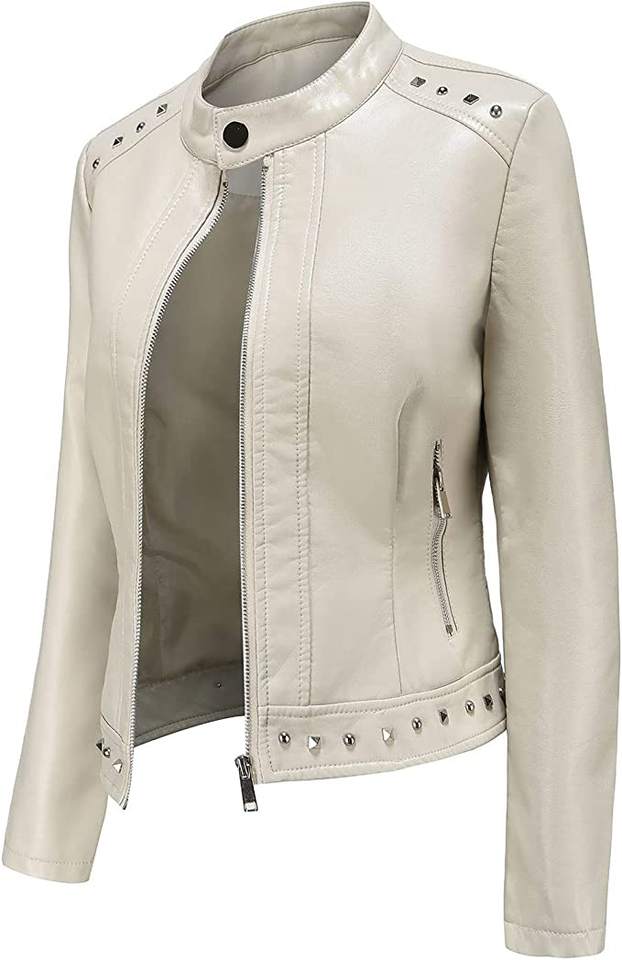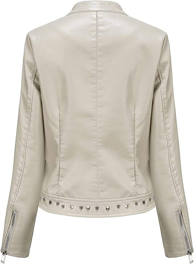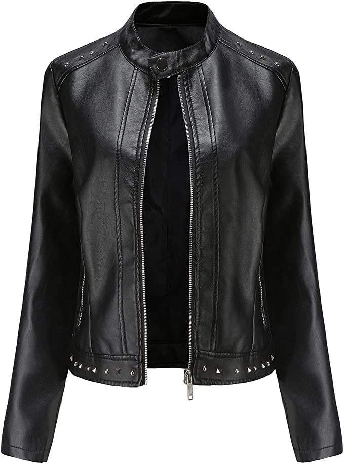 Women's Zipper PU Leather Jackets Short Outdoor Waterproof Casual Jackets