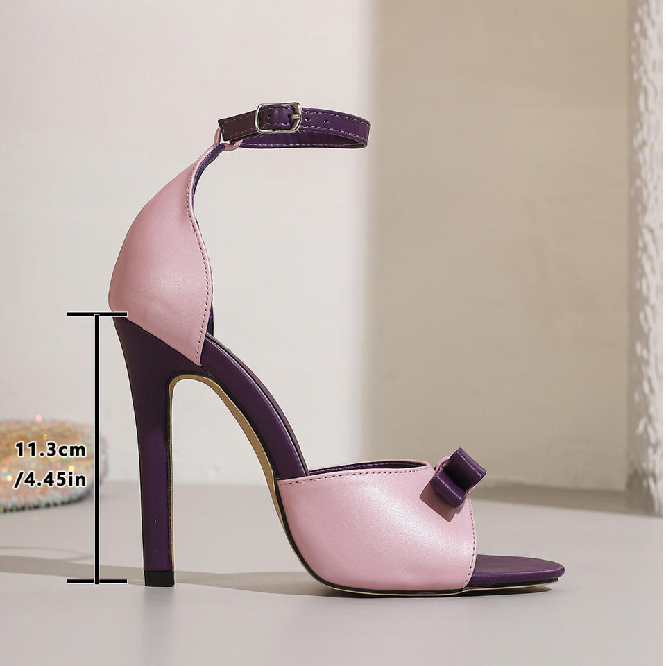 Women's ankle-buckle slip-on strappy pink purple sexy high-heeled sandals with butterfly knots women's slender heels