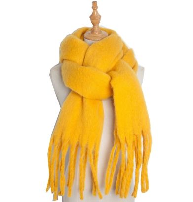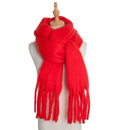 Women's autumn and winter high-end shawl with long fringes, thickened pure-color scarf
