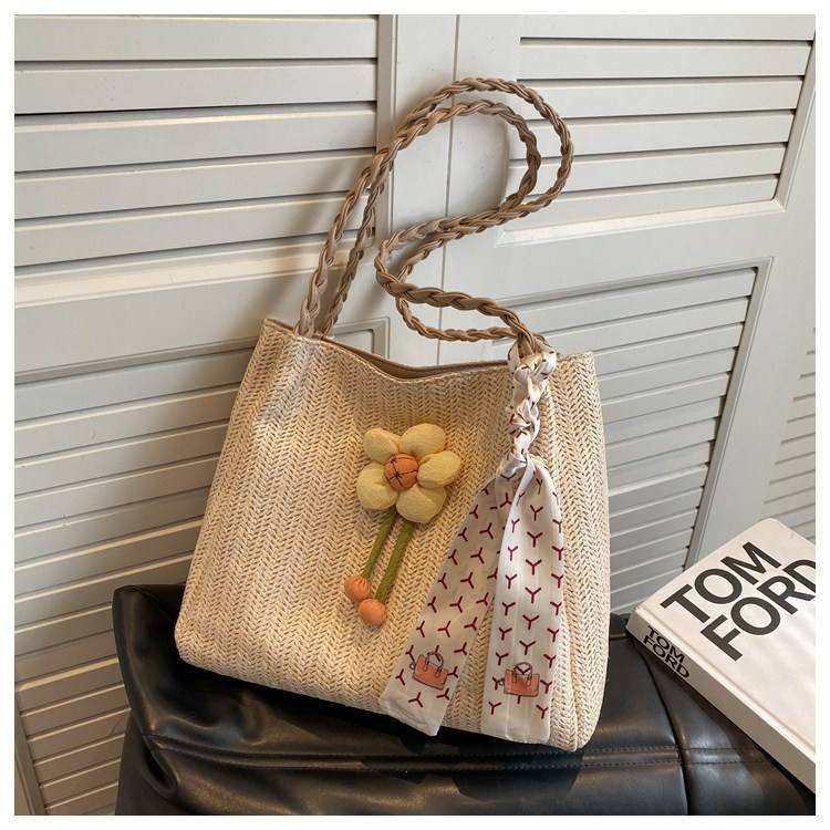 Women's fashionable beach hand woven single shoulder straw woven single shoulder bag