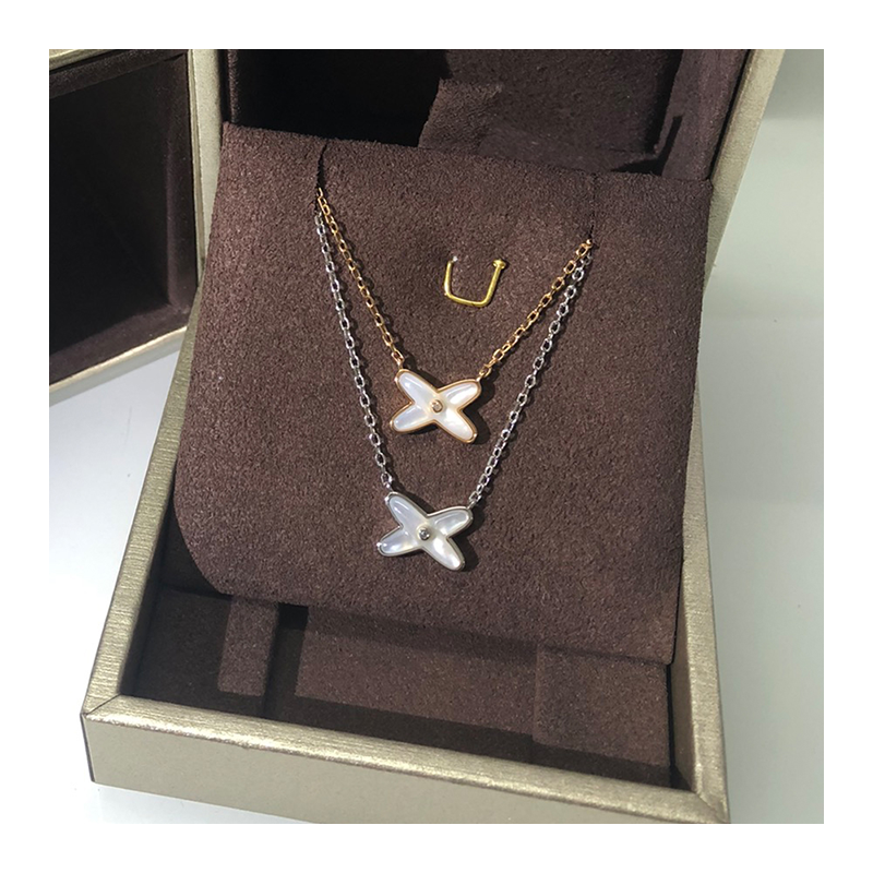 For Men's High-Cut X Letter Exquisite Cross Necklace White Mother-Of-Pearl Silver Gold-Plated Link Chain Fine Choker
