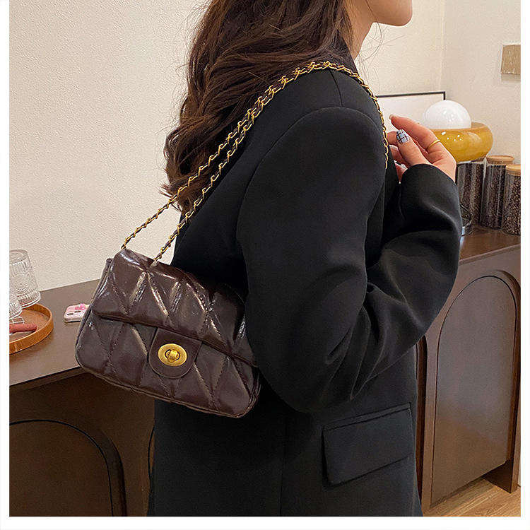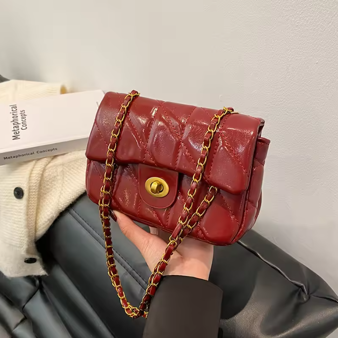 Women's multifunctional fashion trend single shoulder durable red PU grid niche single shoulder bag