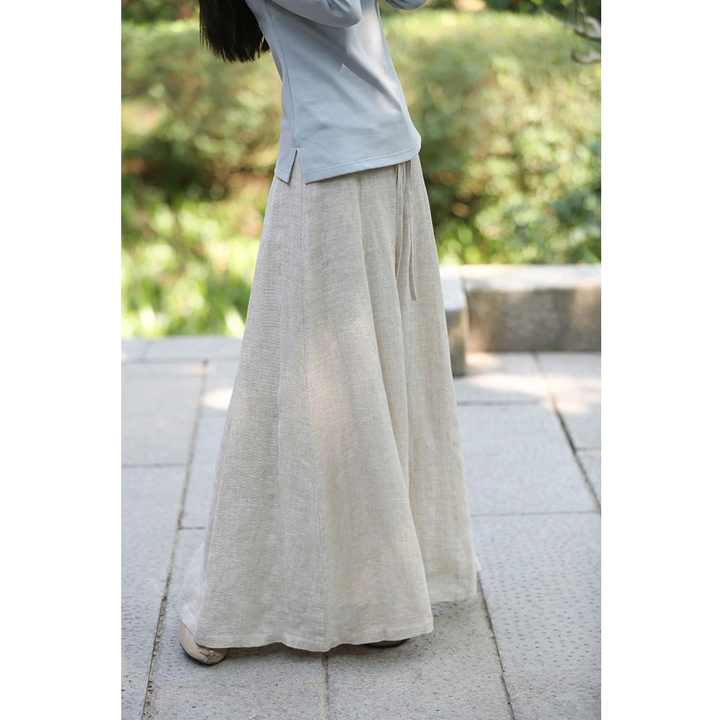 Women's pants vintage linen wide leg culottes pants handmade custom clothing loose long trousers