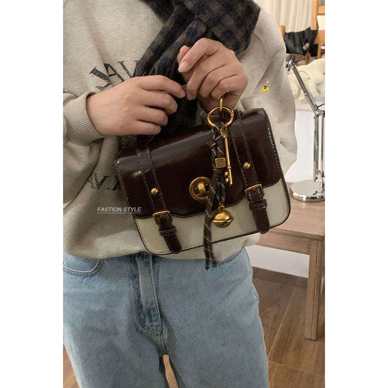 Women's retro rivet shoulder crossbody bag, fashionable handbag, saddle bag