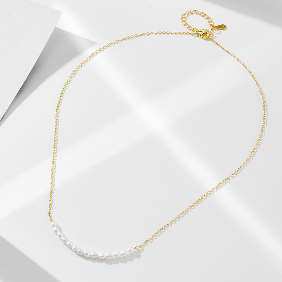 Women's s925 sterling silver smiley face pearl beaded necklace European and American simple rice grain clavicle chain