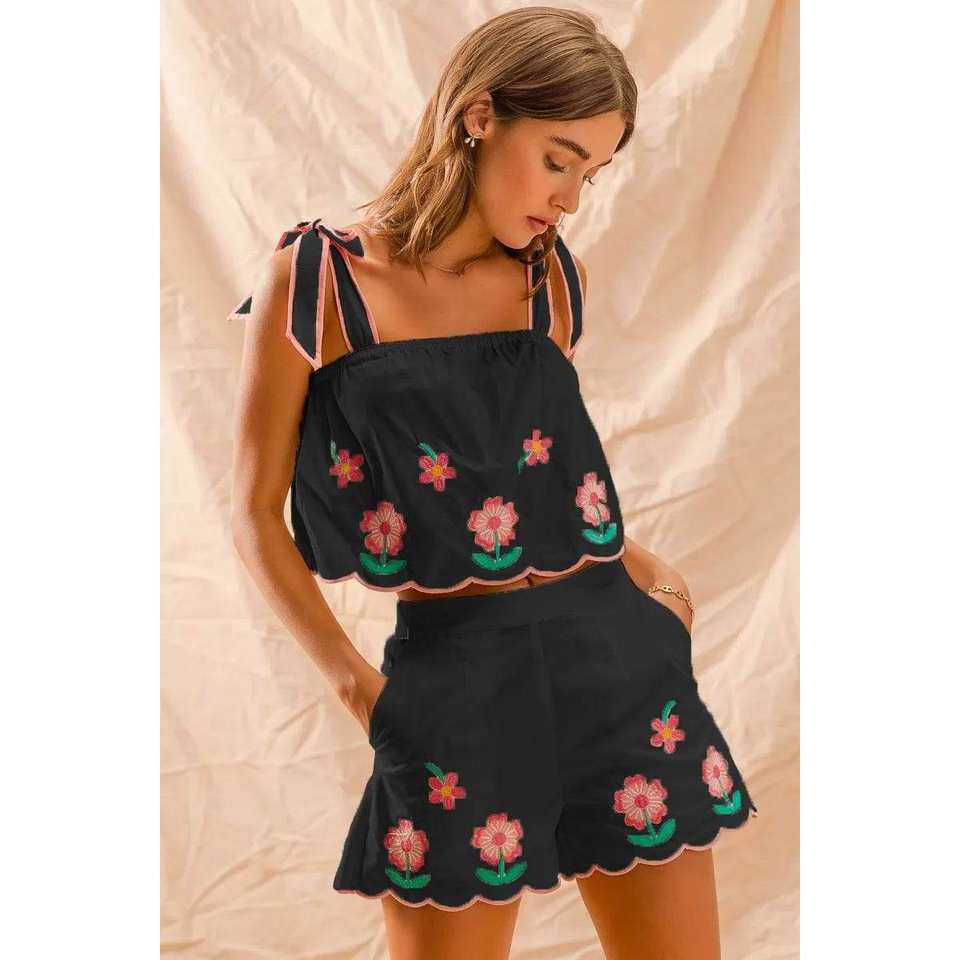 Women's so ME Flower Embroidered Tank Top and Shorts Set