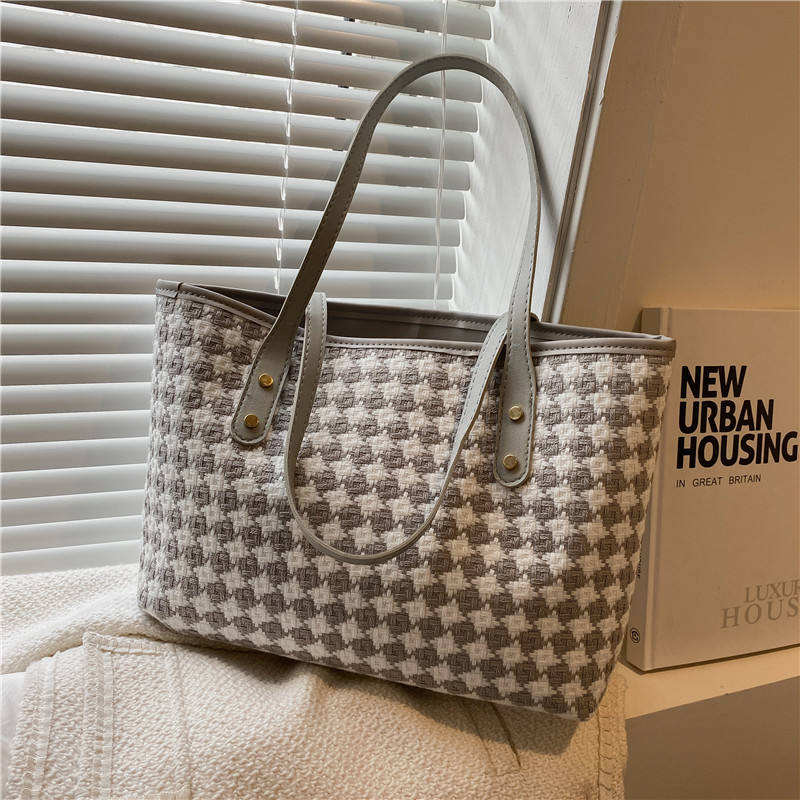 Women's woven plaid handbag, fashionable plaid pattern shoulder bag, waterproof tote bag
