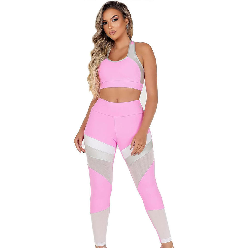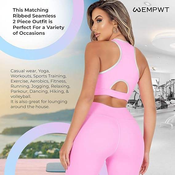 Women stylish yoga set seamless two piece outfit crop top with high waist leggings fashionable activewear gym clothing