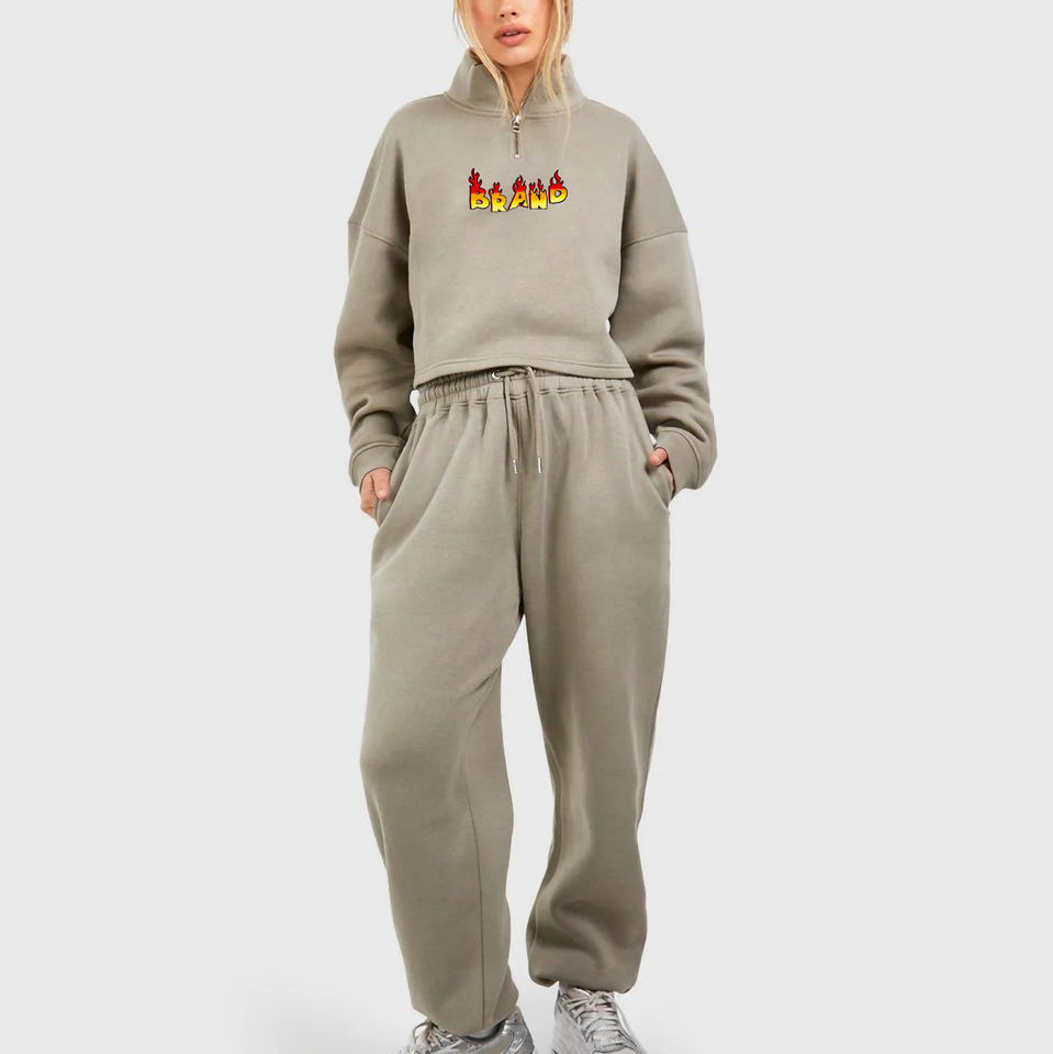 Women trendy oversized sweatsuit hoodie with jogger pants fleece bulk wholesale comfortable casual outfit stylish fashion