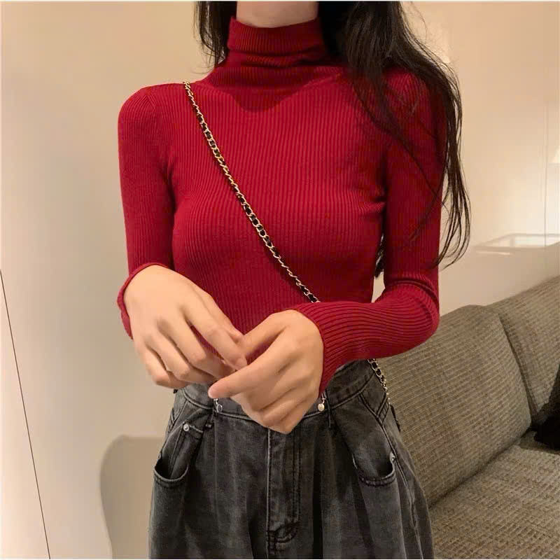 Women turtleneck knitted sweater slim fit long sleeve ribbed top warm stretch pullover autumn winter basic