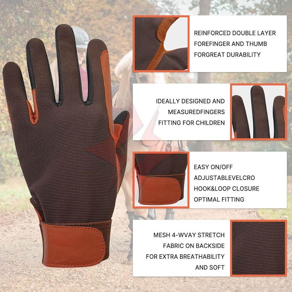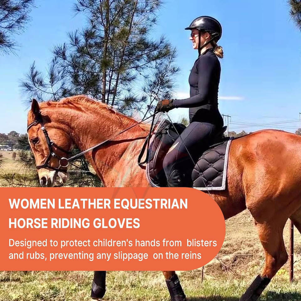 Womens 100% Genuine Leather Horse Riding Gloves Windproof Breathable Equestrian Gloves for Horseback Riding Durable Grip
