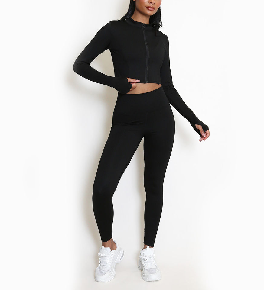 Womens 2-Piece Workout Set with Full Zip Cropped Jacket High Waisted Leggings Women Yoga Set for Gym, Fitness, and Wholesale