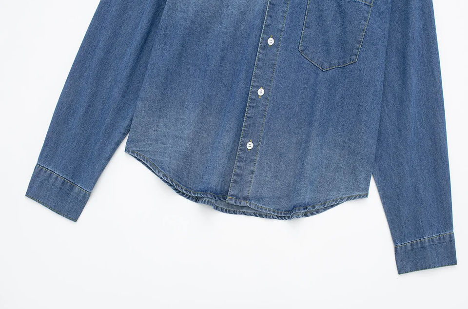 Keywords:Womens Asymmetrical Denim Shirt Long Sleeve