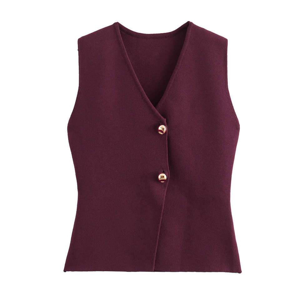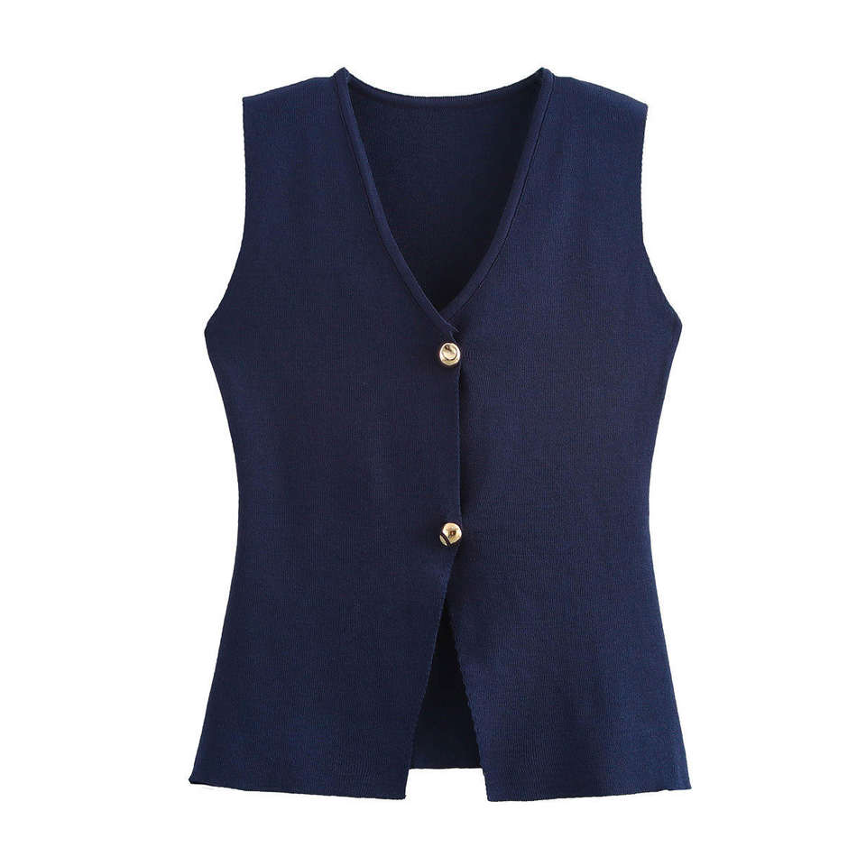 Womens Autumn 2025 Elegant Temperament Fashion Button Knitted Tank Top with Front Logo