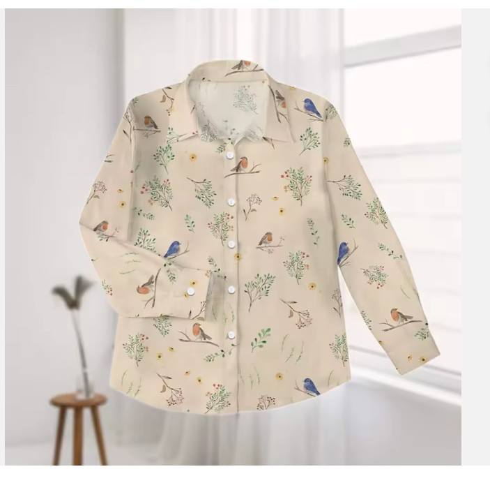 Womens Blouses with Small Horse Embroidery Long Sleeve Solid Color Loose Fit Shirts Casual Tops Designer Size Matching Outfits