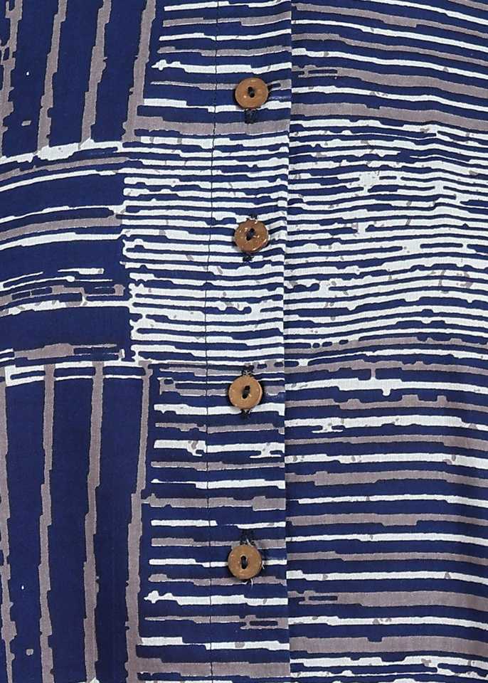 Womens Blue Cotton Geometrical Printed Regular Fit Collared Shirt With Half Sleeves Designed International Casual Office Wear