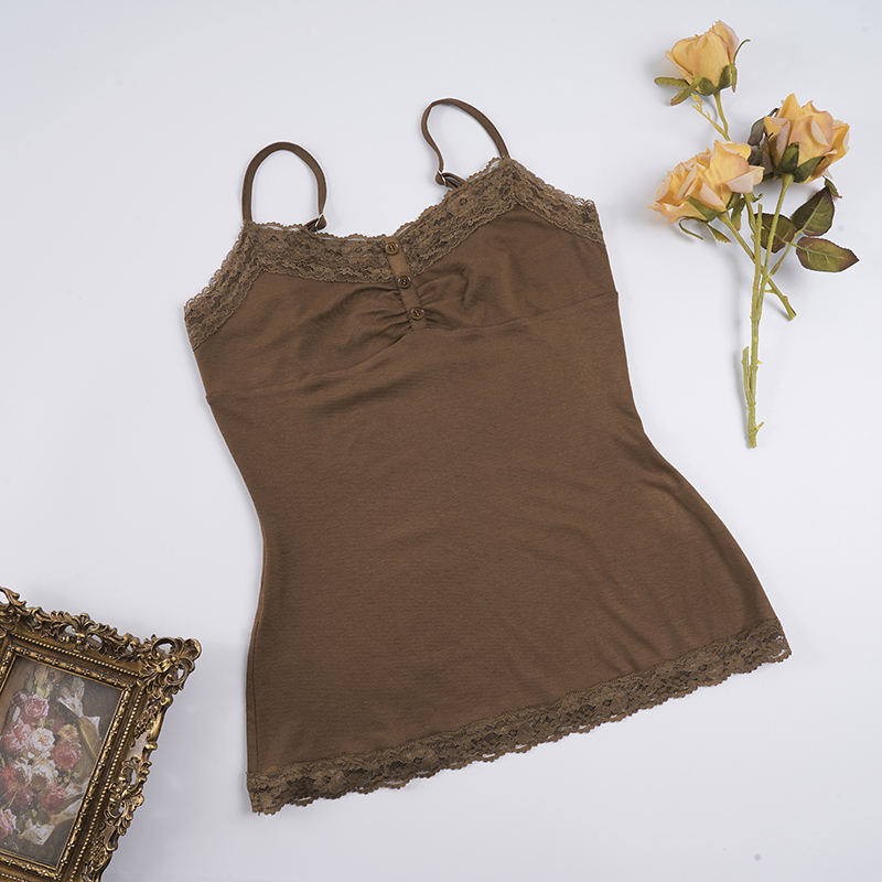 Womens CAMIS Summer Knit Spandex Slim Fit Casual Lace Trim Adjustable Straps Breathable Eco-Friendly Solid Factory Direct