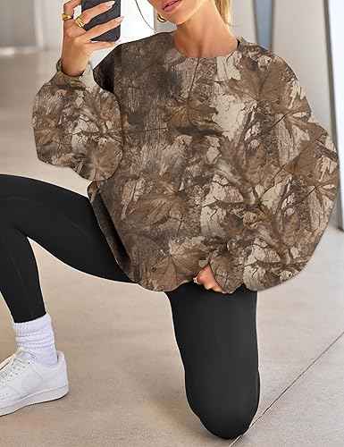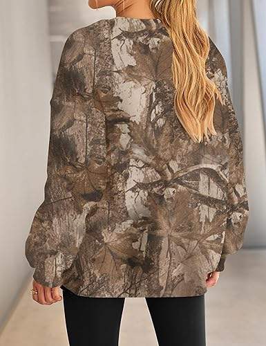 Womens Camo Sweatshirt Oversized Graphic Maple Leaf Print Crewneck Long Sleeve Y2k Trendy Fall Pullover Hoodies