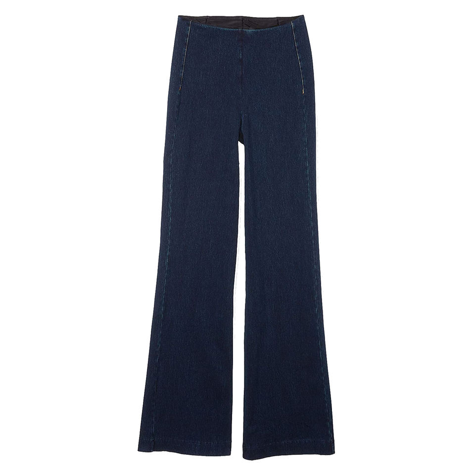 Womens Dark Blue High Waist Flared Jeans Stretch Bootcut Denim Pants Casual Slim Fit Long Trousers Trendy Printed
