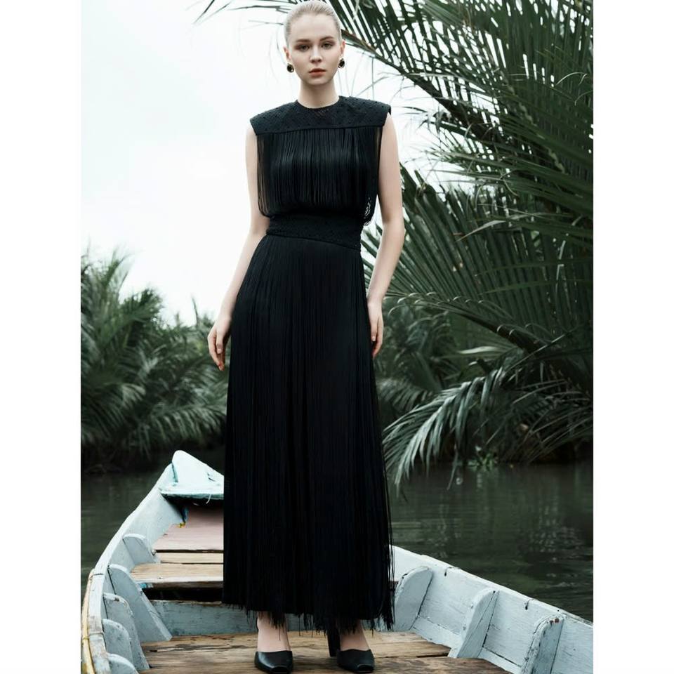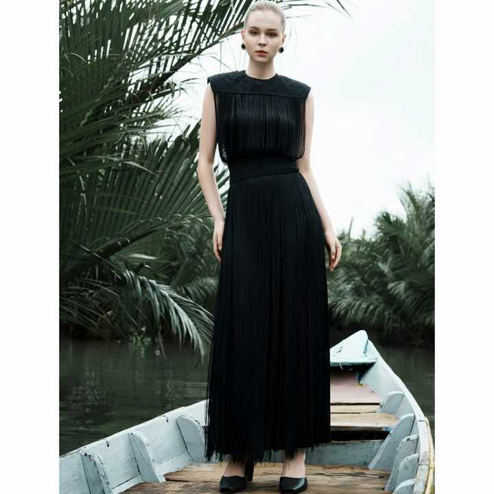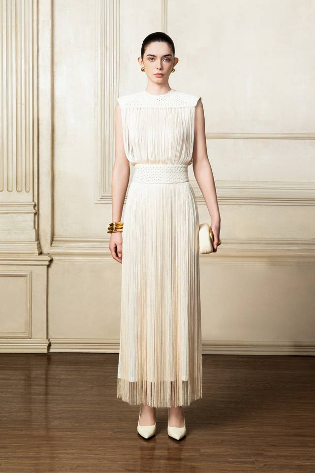 2025 New Design Womens Elegant Long Fringe Dress With Beaded Details IVY MIDI DRESS Rustic Lattice Fabric Fashion Clothes