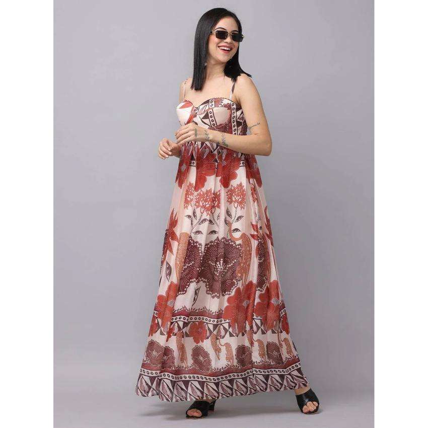 Womens Floral Print Eco-Friendly Natural Waist Maxi Dress Sleeveless Spaghetti Strap a Line Summer Casual Long