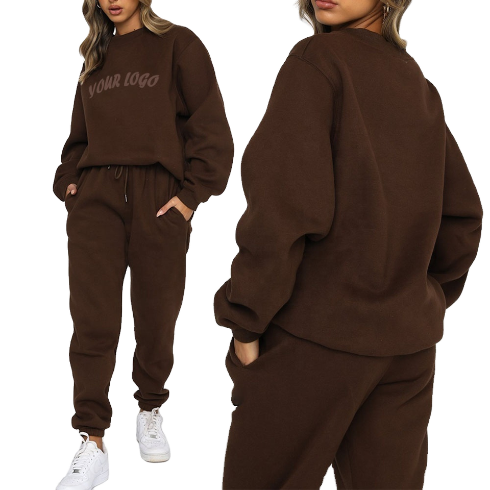 Womens Full Length Knitted Fleece Tracksuit Set Polyester Cotton Winter Warm Hoodie and Jogger Sweat Suit clothing apparel