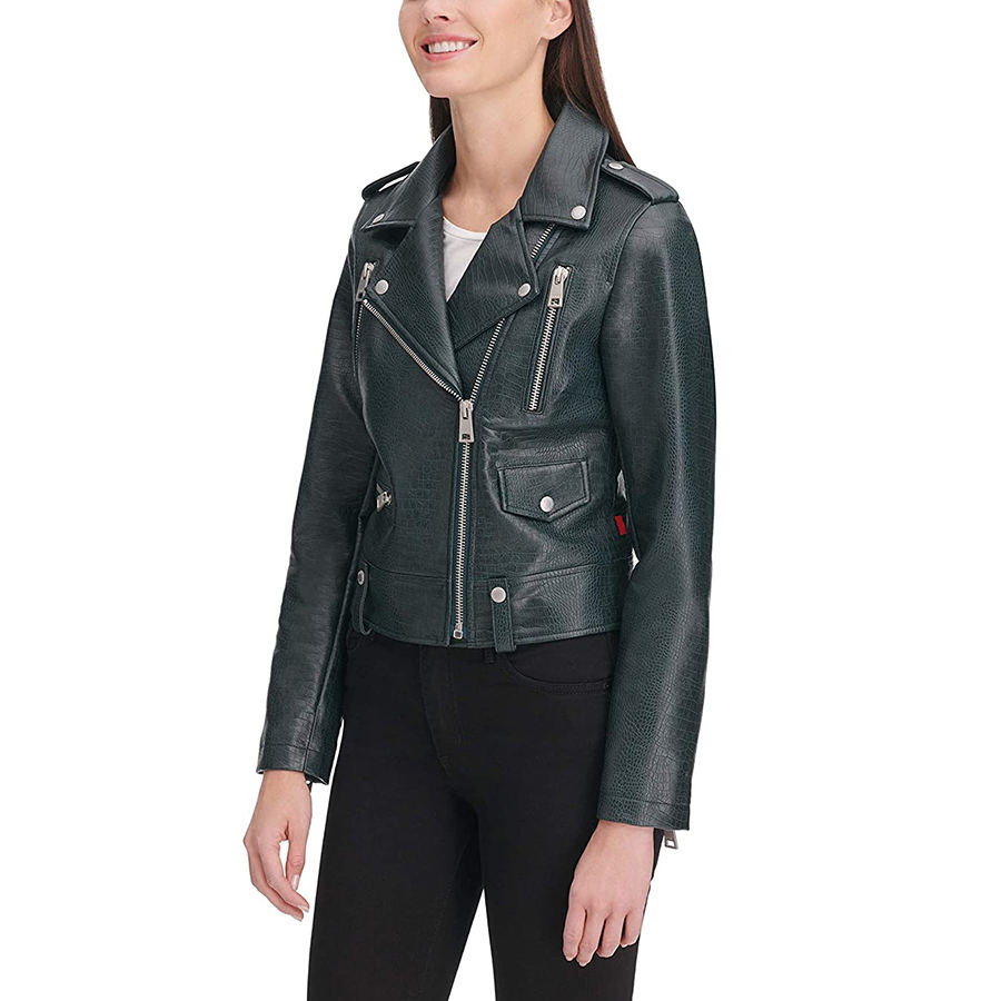 Womens Genuine Leather Dark Green Biker Jacket Slim Fit Moto Coat Zipper Front Long Sleeve Edgy Stylish Outerwear