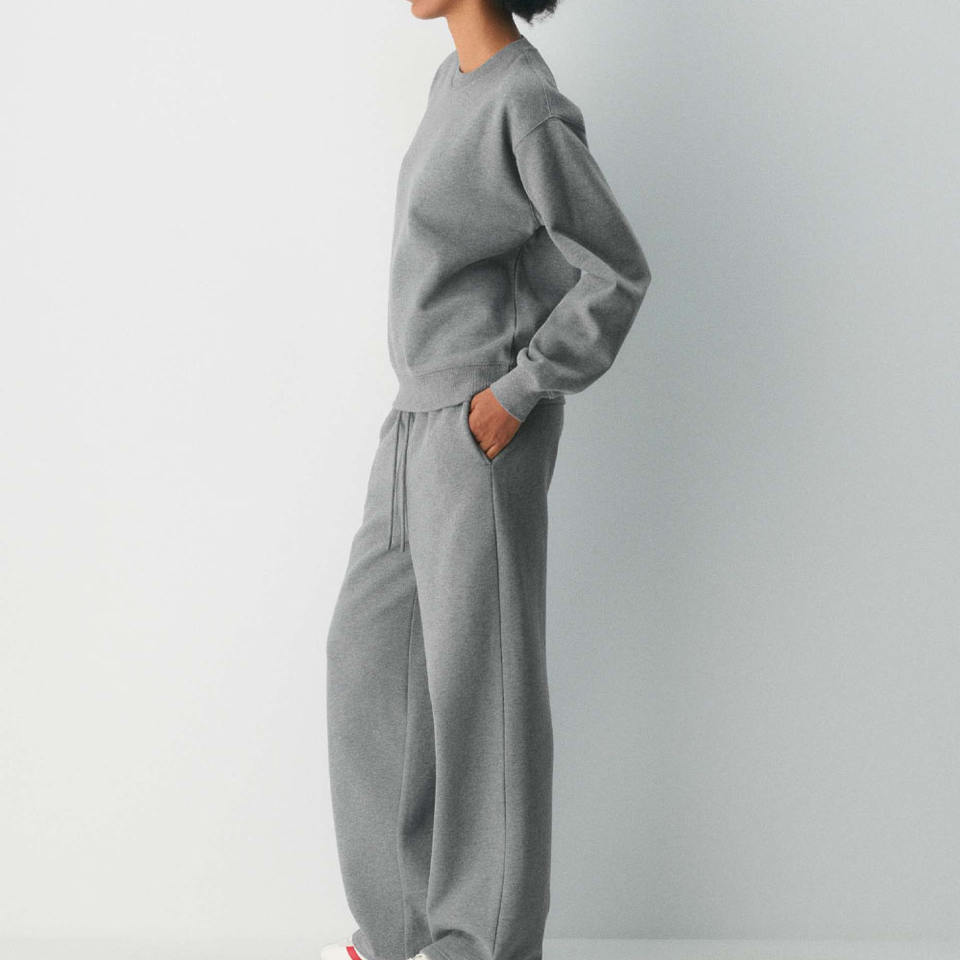 Womens Grey Tracksuit Set Crewneck Sweatshirt and Wide Leg Pants Fleece Winter Warm Casual Loungewear Co-ord Set Activewear