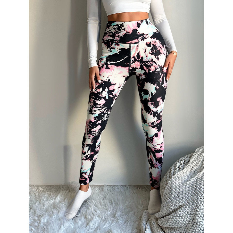 Womens High Waist Tie-Dye Spandex/Nylon Compression Leggings Breathable Push-up Sports Leggings for Yoga and Fitness