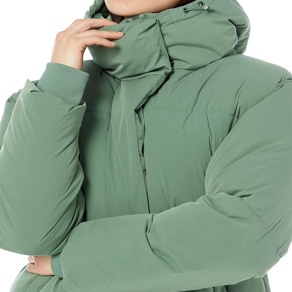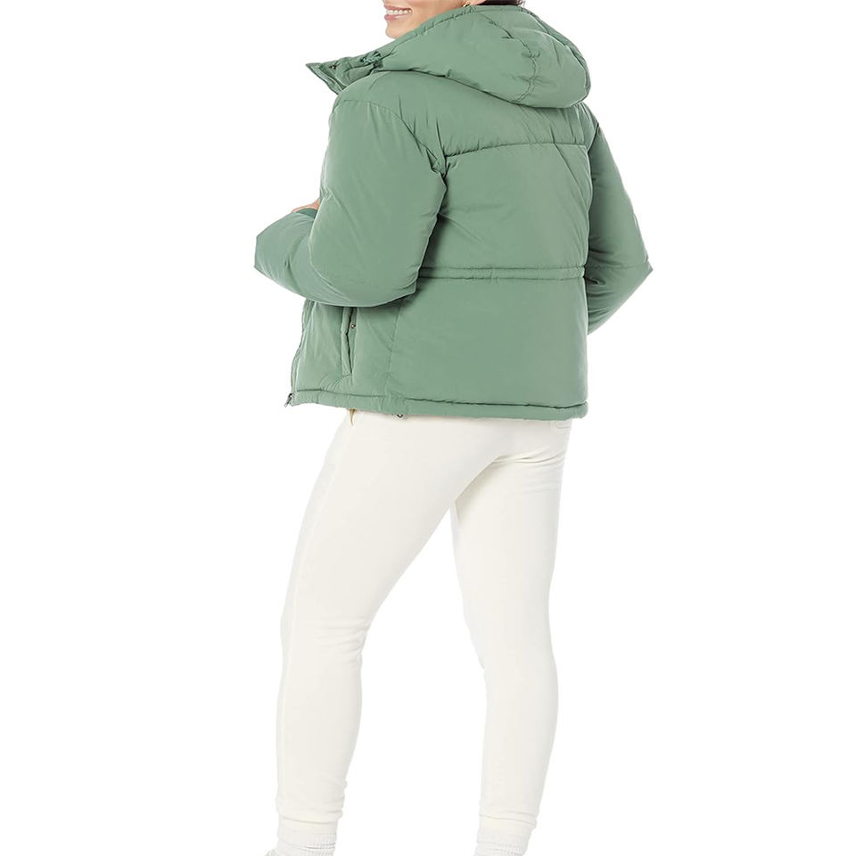 Womens Hooded Puffer Jacket Quilted Insulated Winter Coat Warm Padded Outerwear Stylish Sage Green Puffer with Snap Button