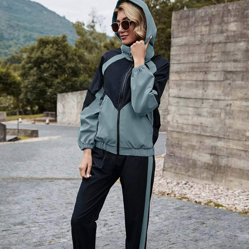 Womens Hooded Two Piece Tracksuit Zip Up Jacket And Jogger Pants Casual Outdoor Sports Lounge Set