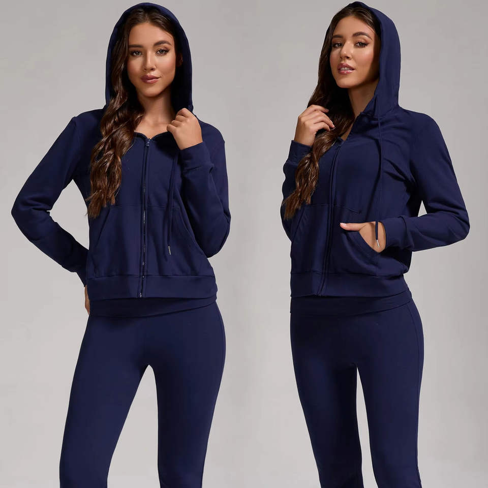 Womens Winter Solid Short Hoodie and Leggings Set Casual Two Piece for Wear Soft Fabric Regular Fit Daily Street Outfit