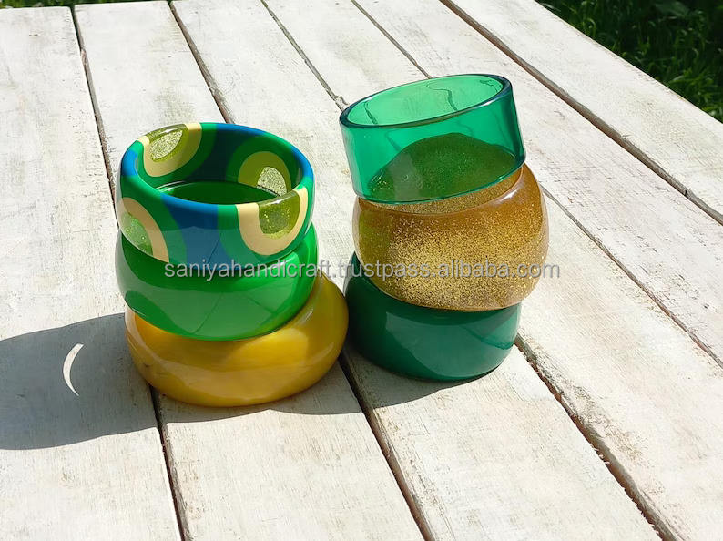 Womens Jewelry Fashion Accessory Vintage Lucite Jewelry Striped Pink Green and Yellow Lucite Cuff Bracelet 1970 Jewelry