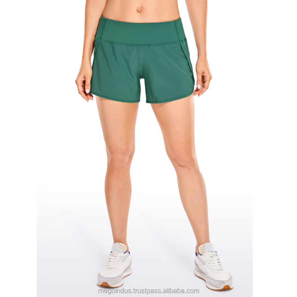 Womens Lightweight Gym Athletic Workout Shorts Mesh Zipper Pockets Liner 4 Quick Dry Running Sport Spandex Shorts