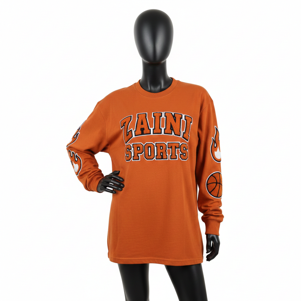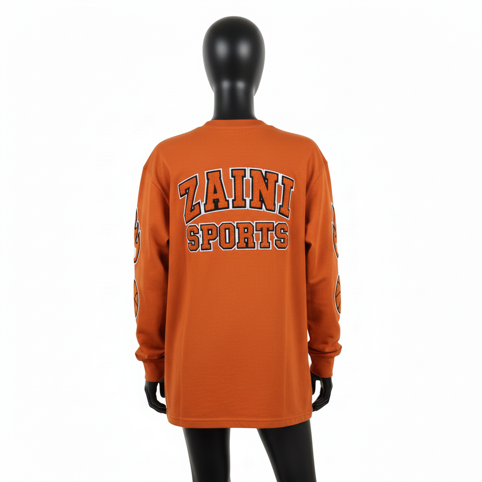 Womens Long Sleeve T Shirt GSM Thick Cotton Jersey Rust Brown Sports Graphic Applique Print Custom Logo long sleeve shirt Cotton