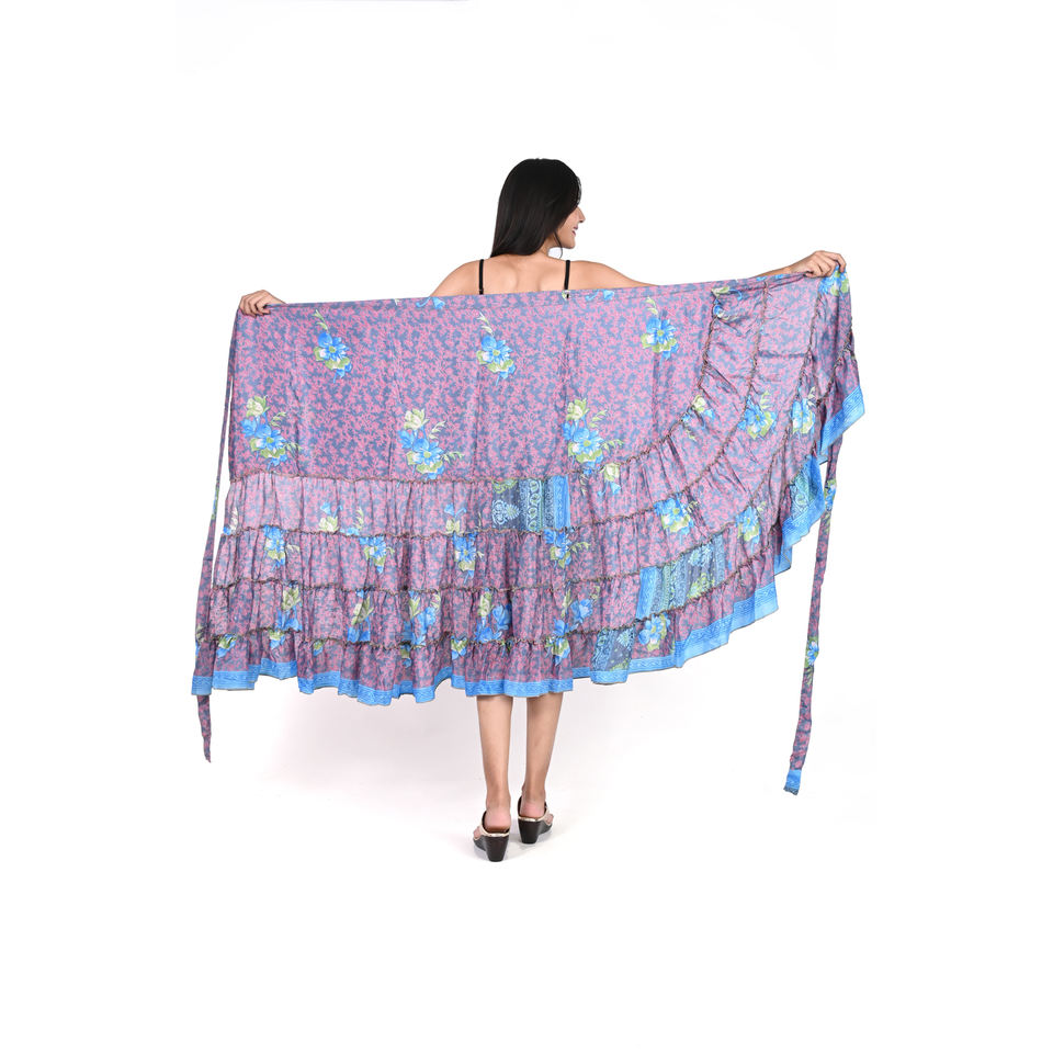 Womens Long Wrap Around Skirt in Viscose Recycled Sari Fabric Adjustable Waist Flowing Fit for Travel Yoga Festivals