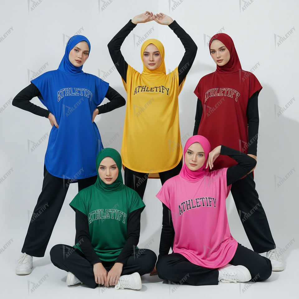 Womens Loose Long Islamic Modest Sports Hijab Outfit Athletic Tunic Quick Dry Breathable UPF50+ Designed for Gym Training Custom