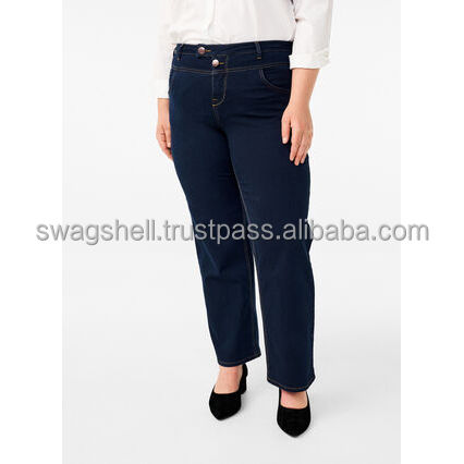 Womens Luxury High Waist Fit Straight Jeans Pants Breathable Quick Dry Accept Regular Full Jeans Plus Size Denim Pants