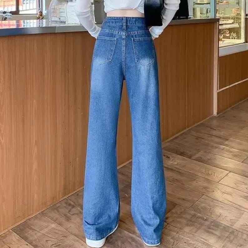 Womens Mid Waist Loose Slim Lace Ruffles 100% Cotton Memory Fabric Denim Jeans Casual Streetwear Pants Fashion Trend