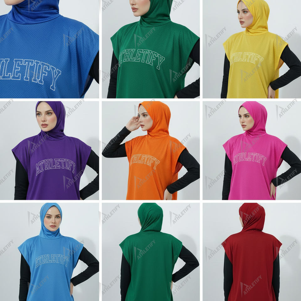 Womens Modest Sports Hijab Dress Long Muslim Athletic Wear Tunic Built-In Hijab Breathable 100% Polyester UPF50+ Quick Dry